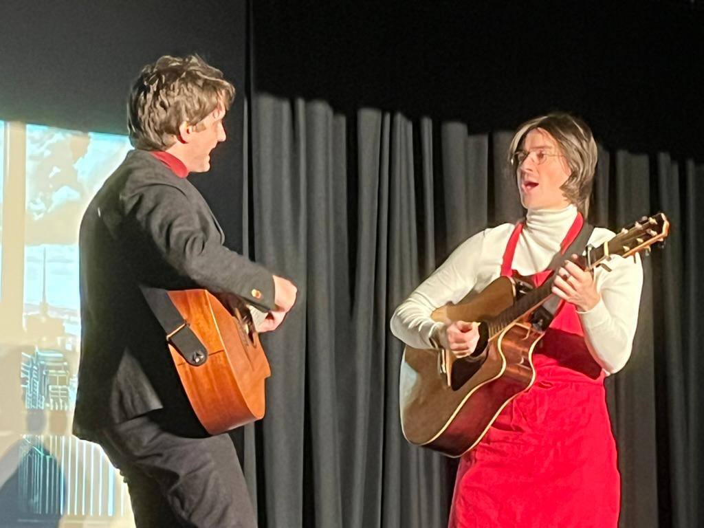 C’était samedi soir, 18 avril, à la salle des Fêtes de Dicy, un moment emprunt de nostalgie : et si Paul Mc Cartney était venu rendre visite à John Lennon une semaine avant l’assassinat de ce dernier …? Et si John avait accepté de reformer les Beatles …? Avec leur immense talent de musiciens, Tristan Garnier et Simon Legendre nous emmènent dans ce rêve, rythmé par les morceaux des Beatles magnifiquement exécutés au piano, à la guitare, à la basse et aux percussions. Leurs disputes, leurs discussions sur les morceaux : tout a bien existé, sauf cette rencontre bien sûr ! Le public nombreux a été emporté avec grand plaisir dans l’histoire exceptionnelle de ces deux musiciens extraordinaires.